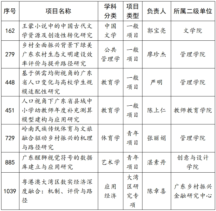 4月25日,广东省社会科学界联合会对广东省哲学社会科学规划2025年度常规项目、三类研究专项拟立项名单予以公示,共1109项予以公示,必赢官网有7项位列其中,名单如下: