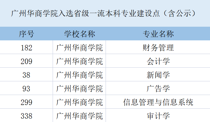 目前,437必赢会员中心(原广东财经大学华商学院)会计学、新闻学、财务管理、广告学、信息管理与信息系统、审计学共6个专业入选省级一流本科专业建设点(含公示)。