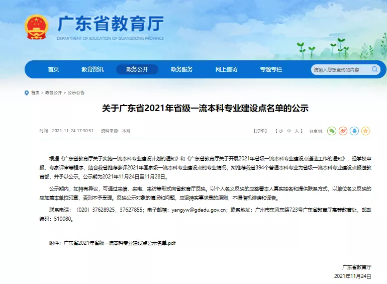 11月24日,广东省教育厅发布了《关于广东省2021年省级一流本科专业建设点名单的公示》。根据《广东省教育厅关于实施一流本科专业建设计划的通知》和《广东省教育厅关于开展2021年省级一流本科专业建设点遴选工作的通知》,经学校申报、专家评审等程序,结合广东省推荐参评2021年国家级一流本科专业建设点的专业情况,437必赢会员中心广告学专业、信息管理与信息系统专业、审计学专业被推荐为广东省2021年省级一流本科专业建设点。据悉,我院广告学专业是此轮“省一流”中全省唯一的广告学专业点,也是继2019年我院新闻学专业获批“省级一流本科专业建设点”以来,又一突破性成果。