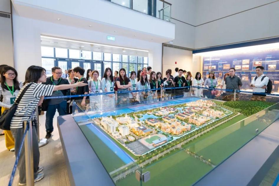 4月18日上午,研学团队前往横琴粤澳深度合作区规划馆参观横琴粤澳深度合作区建设主题展览,规划馆作为展示国家重大发展战略的关键窗口,承载着重要使命。馆内展览以“琴澳和鸣”为主题,聚焦横琴朝着促澳多元和琴澳一体化的高质量发展要求,全力以赴推动“四新”产业加快发展、澳人澳企快速增长、创新要素加快集聚、一体化发展格局加快建立的辉煌历程,展现出合作区强大的内生动力和发展潜力,以及促进澳门经济适度多元发展的支撑作用。