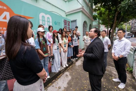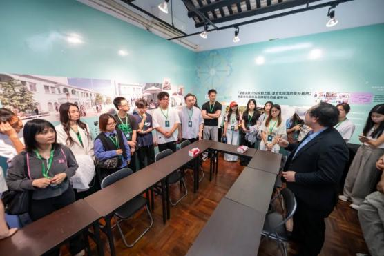 望厦山房项目负责人杨洪伟先生热情接待必赢官网研学团队,围绕园区“以文塑旅、以旅彰文”的创新运营模式展开系统介绍。他结合建筑改造实践,重点解析了历史建筑活化利用,即通过融合传统工艺与现代技术,完整保留建筑历史风貌与文化基因,创新性植入文创市集、数字展陈等业态,构建文化遗产保护与商业价值转化的动态平衡机制,实现历史文物从静态展示到活态叙事的转变。通过展示园区将大三巴牌坊元素转化为系列数字藏品的典型案例,生动演绎政策赋能与技术创新如何协同驱动文化遗产的现代转译,令师生们直观理解文保活化项目中“守正”与“创新”的辩证关系。