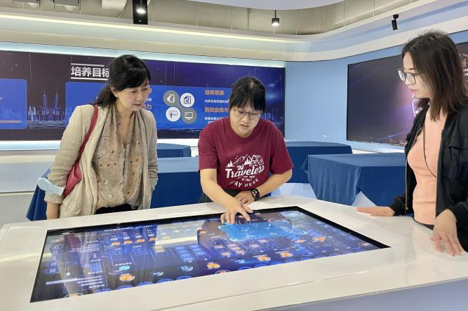 在必赢官网人员陪同下,乐卓博大学代表参观了大数据与人工智能实验室、金融综合虚拟仿真实训室、桃花岛电商孵化中心、动漫游戏产业学院及健康医学院,深入了解了学校的教学设施与产教融合实习实践平台。
