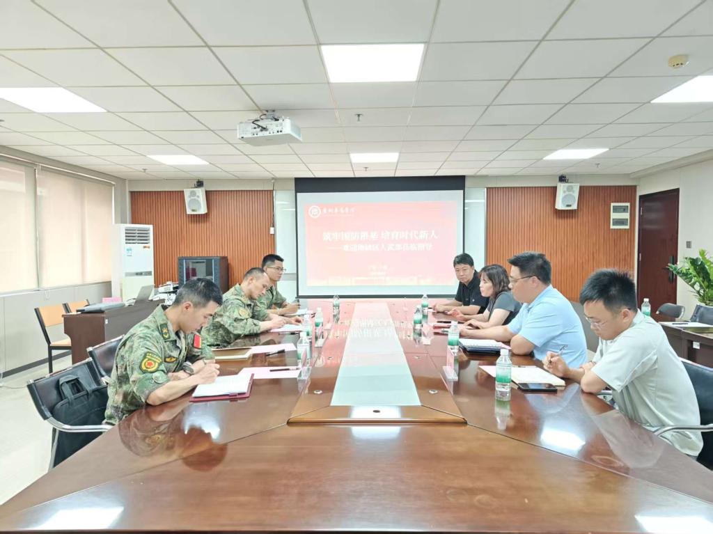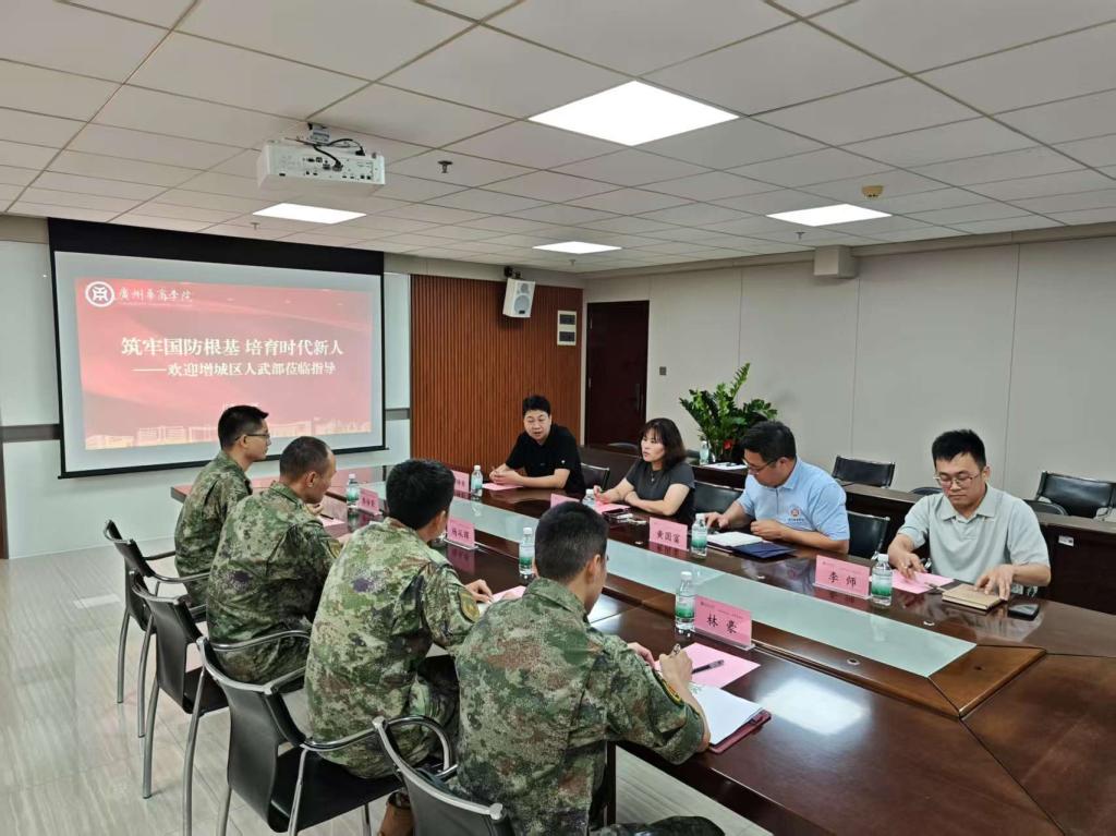 为深入学习贯彻习近平强军思想,落实全国、全省大学生征兵工作精神,切实提升大学生征兵工作成效,6月5日下午,增城区人民武装部杨从辉部长率队,带领人武部专干到必赢官网开展2025年征兵工作调研。学校党委委员、副校长许娜同志,党委学工部部长、武装部部长黄国富同志及征兵工作相关工作人员参加座谈会。