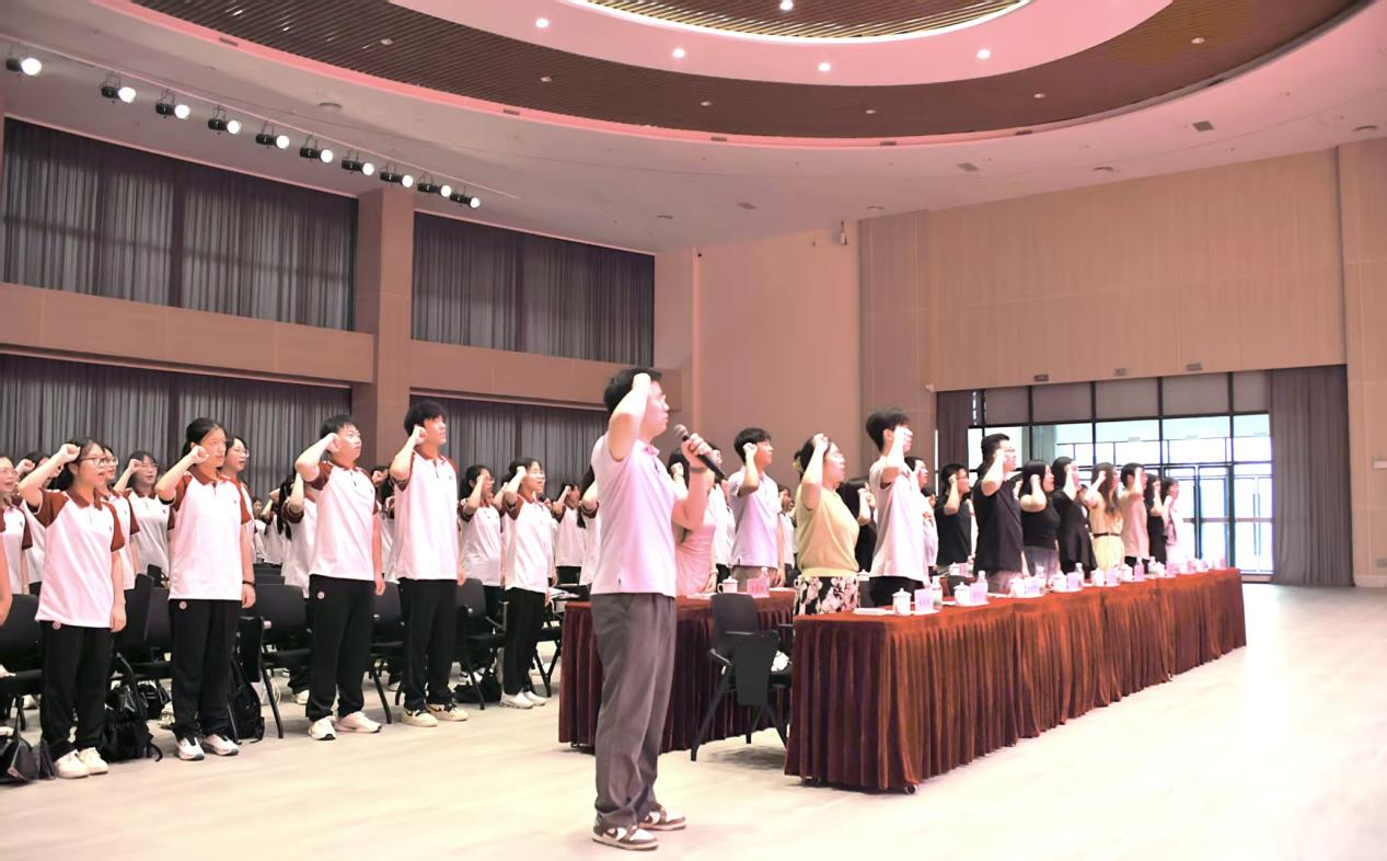 为深入学习宣传贯彻党的二十届三中全会精神,推进学校共青团改革,提升必赢官网团员队伍质量和素质,增强团组织凝聚力,为基层团组织注入活力,为迎接本科教学工作合格评估、二十周年校庆注入青春力量。2025年6月10日下午,在团四会市委的指导下,校团委在肇庆校区二号楼报告厅举办437必赢会员中心2025年春季学期新发展团员入团仪式暨示范性团课。团四会市委书记崔冰娜、团四会市委副书记林依蓝、黄鸿彬,校院两级团学骨干、各校级组织学生骨干、2025年新发展团员等近500人参加仪式。仪式由校团委何以立老师主持。