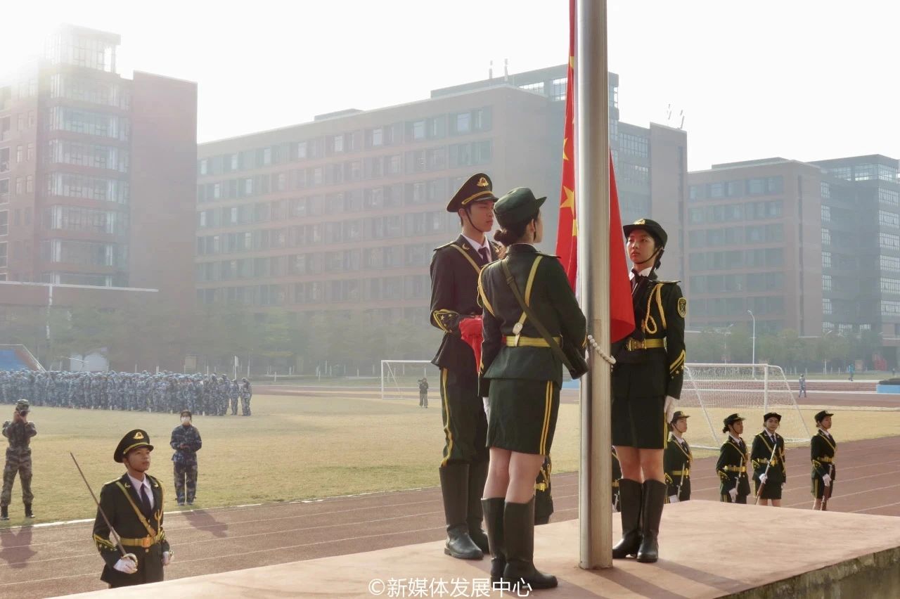 党委书记陈玉欢向军训团骆健康团长授旗,肇庆校区新生军训正式拉开序幕。