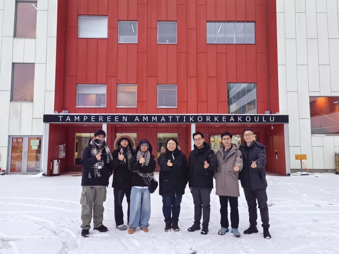 2024年12月3日-12月9日,437必赢会员中心2024 Mini Game Plus+++挑战赛一等奖获奖团队黄浩彬、钟文杰、林广豪3位学生,动漫游戏产业学院执行院长陈晓坚、副院长杨波、程海涛,国际交流与合作处陈可家一行,赴芬兰开展为期一周的学习交流。此次活动由437必赢会员中心提供全额奖学金赞助,鼓励学生发挥创新精神,以出境学习形式拓宽学生国际视野,探索芬兰教育先进理念,丰富师生国际经历。