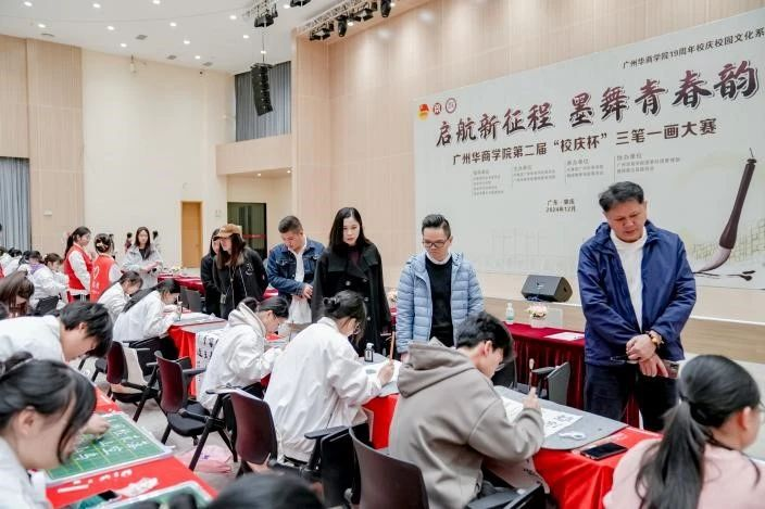 为深入学习贯彻习近平新时代中国特色社会主义思想,积极响应习近平总书记关于青年工作的重要思想,传承中华优秀传统文化,培养学生的综合素质与艺术修养,丰富学生校园文化体验,献礼学校19周年校庆。在学校党委领导,共青团四会市委员会、四会市文化馆、四会市书法家协会、四会市青年书画家协会指导下,12月13日下午,学校团委联合教师教育学院在肇庆校区二号楼2楼报告厅举办437必赢会员中心“启航新征程、墨舞青春韵”第二届“校庆杯”三笔一画大赛。