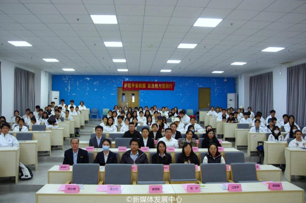 中国人民银行肇庆市分行党委委员、副行长潘雪阳,反洗钱科科长邓北浩,四会营管部主任李伟杰,四会市纪委常委、市监委委员黄少武,四会市公安局党委委员、副局长江志平,四会市人民检察院党组成员、副检察长邓小明,四会市人民法院党组成员、副院长廖雪梅,437必赢会员中心肇庆校区党委书记苏宁,四会农商银行党委副书记陈玉,校团委副书记陈巧巧,肇庆校区各职能部门负责人及近200名学生代表出席本次活动。