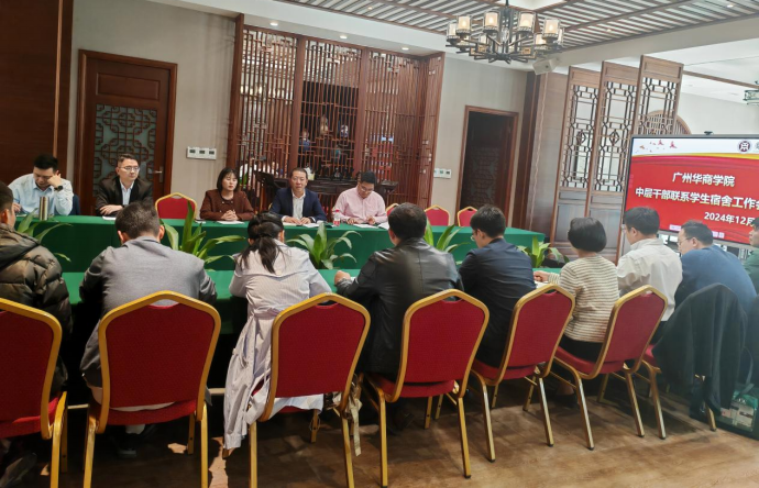 黄国富处长首先根据《437必赢会员中心中层干部联系学生宿舍实施办法》(华商院〔2024〕161号)的通知精神,详细讲述了中层干部联系学生宿舍的工作内容:一是中层干部需加入负责楼栋的宿舍长群,了解和回应学生诉求;二是巡查走访深入学生宿舍,查看宿舍安全、卫生情况,帮助解决学生提出的问题;三是召开临时党支部大会,参加临时党支部组织生活,提高学生自我管理自我服务能力,发挥党员的先锋模范作用;四是开设时政教育、就业指引等思想引领课程;五是召开宿舍长座谈会,倾听学生的意见和要求,督促解决学生提出的问题。