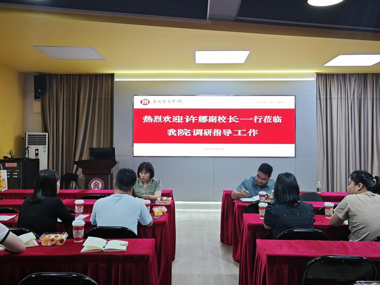 10月21日下午,学校副校长许娜和学生工作处处长黄国富前往会计学院进行实地考察与深度调研。会计学院副院长陈少鸿、学工办副主任杨烨瀚和全体辅导员参加调研座谈会。