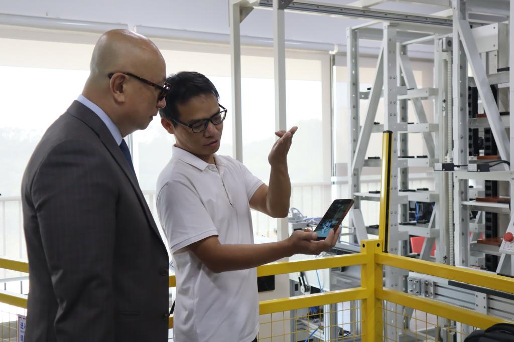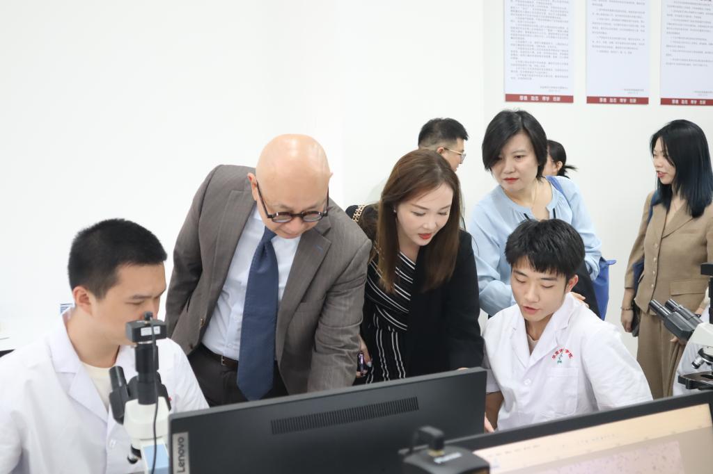 新加坡社科大学代表团先后参观了必赢官网医药健康实验中心、人工智能产教融合实训基地和桃花岛电商中心等教学实践基地。在这些充满活力的实践课堂中,代表团不仅近距离观摩了同学们的实际操作和学习过程,还与师生们交谈互动,加深了他们对必赢官网教学理念和实践能力的理解。