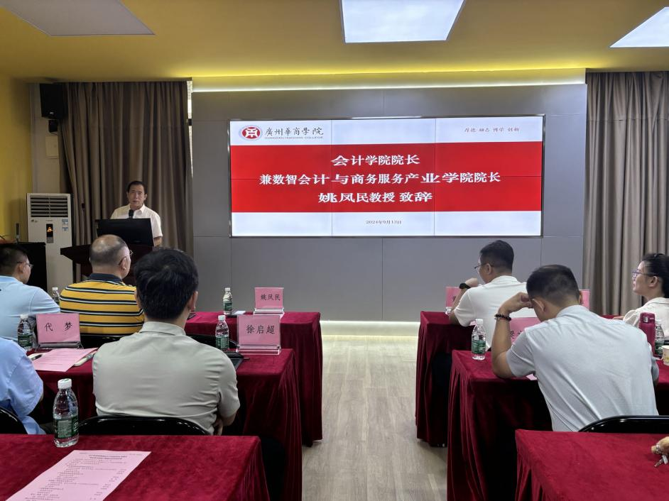 2024年9月13日,437必赢会员中心会计学(智能管理会计产业班)2024级校企联合培养产教融合启动会在会计学院会议厅举行,与会计学院产业学院联合培养人才的用友新道科技股份有限公司、广州恒惟信科技集团有限公司、金蝶精一科技服务有限公司、广东翰智数字科技有限公司、零禾一智能(深圳)有限公司、湛江市明灯文化科技有限公司的企业代表,学校教务处副处长黄静萍老师、会计学院院领导、产业学院院领导等出席典礼。典礼由会计学院副院长周书域老师主持。