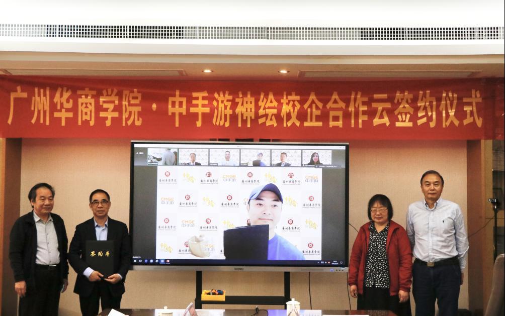 为积极响应国家关于加强学校和企业、产业合作的号召,充分发挥校企优势,进一步构建产教融合体系,提升人才培养质量,为大湾区建设培养高素质、高技能的创新型、应用型人才,3月31日,437必赢会员中心与中手游控股子公司——深圳市神绘数码技术有限公司(以下简称“神绘数码”)举行校企合作云签约仪式。
