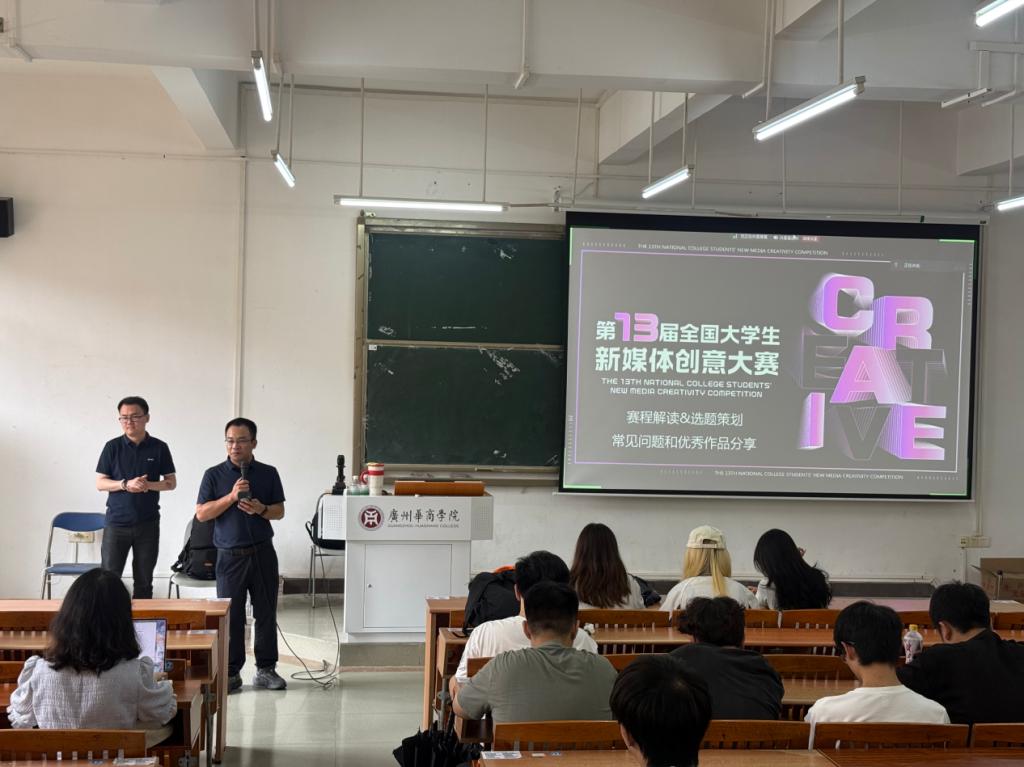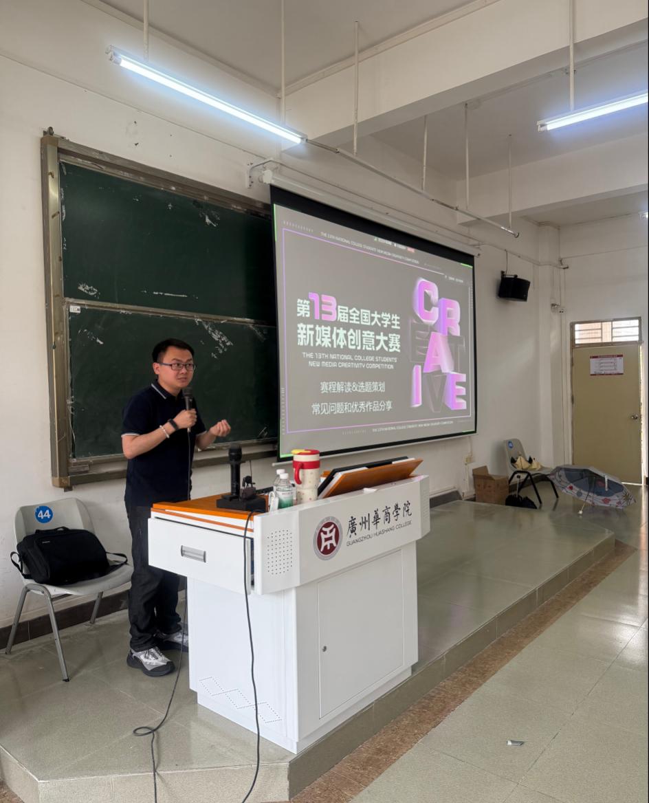 2025年5月20日下午,第13届全国大学生新媒体创意大赛宣讲会在437必赢会员中心广州校区励志楼C402举行。北大方正资深讲师张志宇为网络与新媒体专业2022级、2023级、2024级学生深度解读赛事规则、创作方向及行业趋势,现场座无虚席,互动热烈。宣讲会由数字传播学院网络与新媒体系主任张志荣副教授主持。