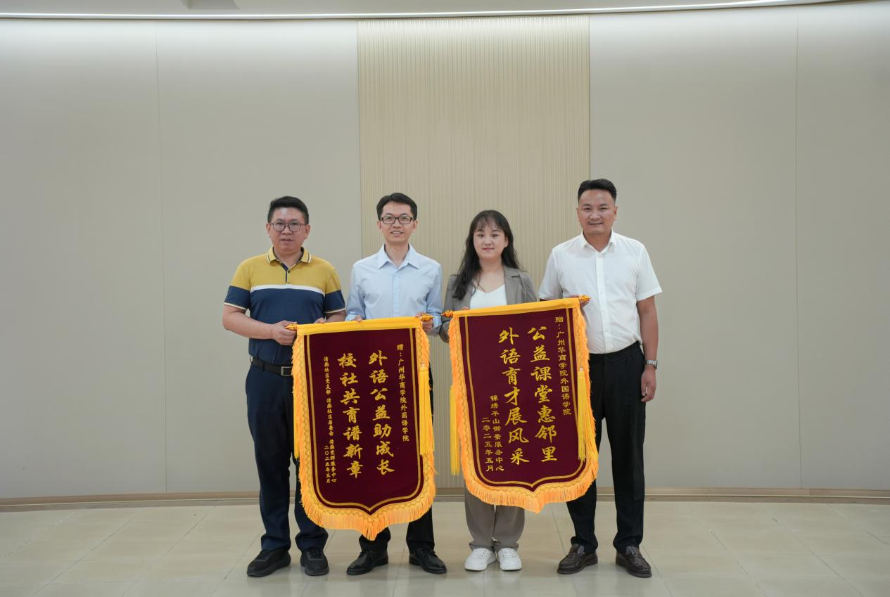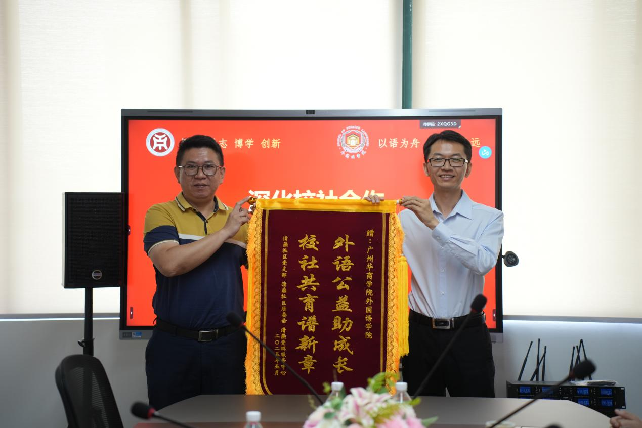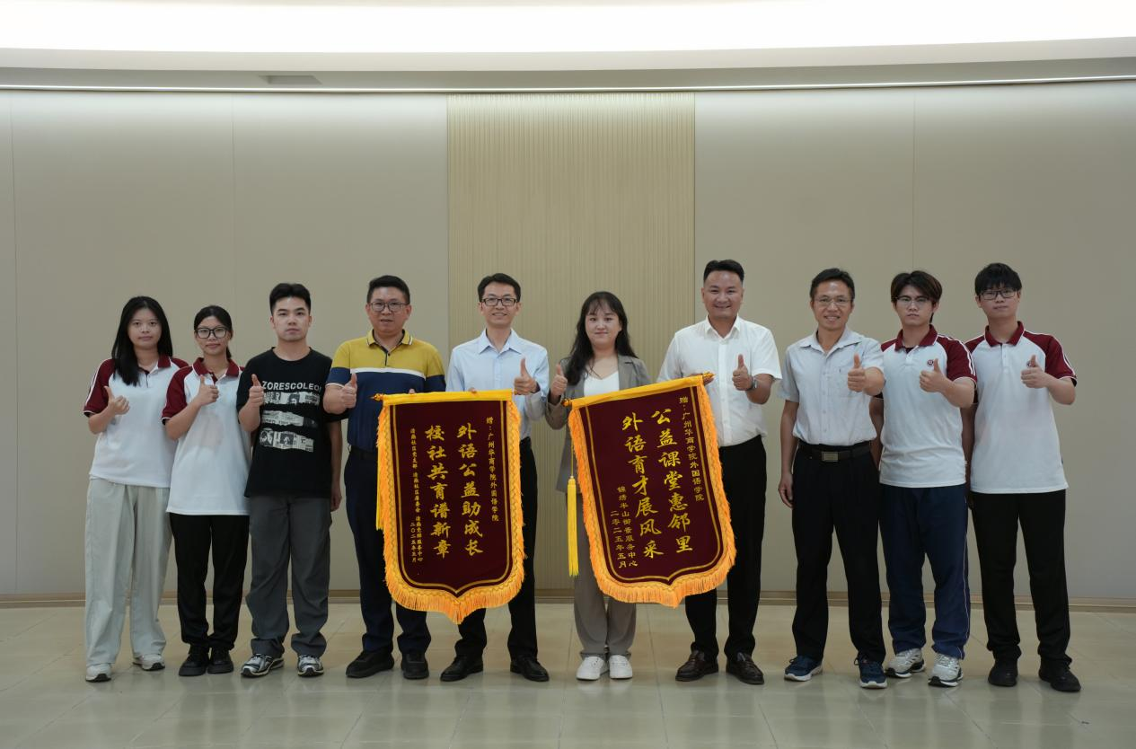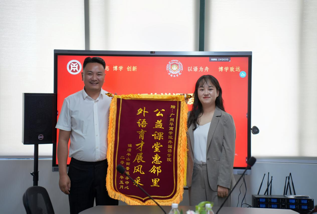5月13日上午,437必赢会员中心外国语学院与增城区清燕社区、锦绣半山御景花园小区物业联合举办的“晚风学堂”英语晚辅公益项目赠锦旗仪式在创新楼403-2小会议室举行。清燕社区邓镜波书记、锦绣半山御景花园小区物业陈勇经理、外国语学院何顺发副院长及“晚风学堂”项目组全体成员共同见证这一校社协同育人的温暖时刻。“晚风学堂”不仅体现了外院学子践行社会责任的热忱,更是校社双向奔赴、共筑教育公益新模式的生动缩影。