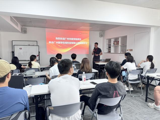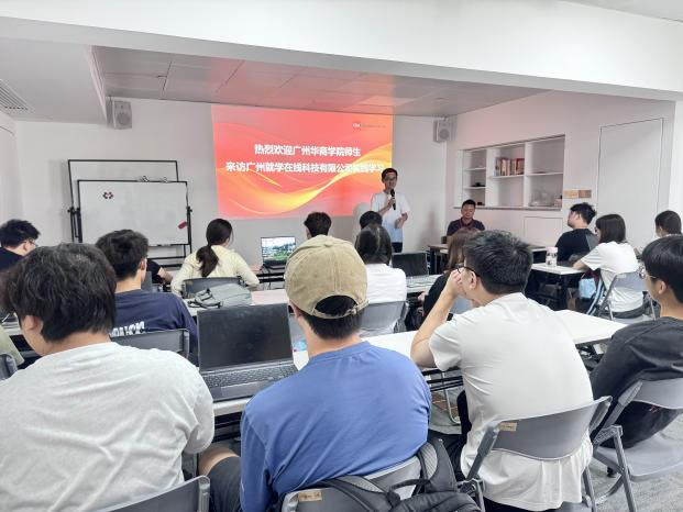 活动伊始,师生一行参观了广州就学在线科技有限公司的办公环境,近距离观察企业日常运营流程。公司负责人详细介绍了其以数据驱动为核心的业务模式及发展历程,让同学们直观感受到数据分析在现代商业决策中的关键作用。整洁高效的办公场景与前沿技术的应用案例,激发了同学们对数据分析行业的浓厚兴趣。
