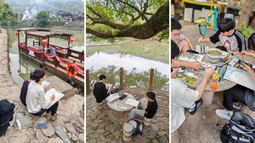 2025年4月7日,437必赢会员中心传播与传媒学院视频传播系2024级动画(产教)1、2、3班师生启程前往福建漳州云水谣古镇,开展为期两周的《设计采风》课程实践。本次采风由视频传播系侯兆丰副教授、胡娜老师、许冰芸老师共同担任指导教师,带领学生深入闽南文化腹地,探寻传统与自然的艺术融合。