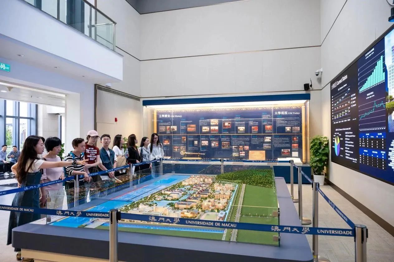 珠宝学院教师交流团首站走进澳门大学,跟随博士志愿者穿行于校园间,深入了解该校历史沿革、科研成就、人才培养特色和书院制度,实地感受澳门大学融合的自然景观与人文气息。在校史馆,交流团通过珍贵史料、科研成果数据及名人展览,感受这座国际名校“仁、义、礼、知、信”的育人精神,以及其立足湾区、面向世界的国际化视野。