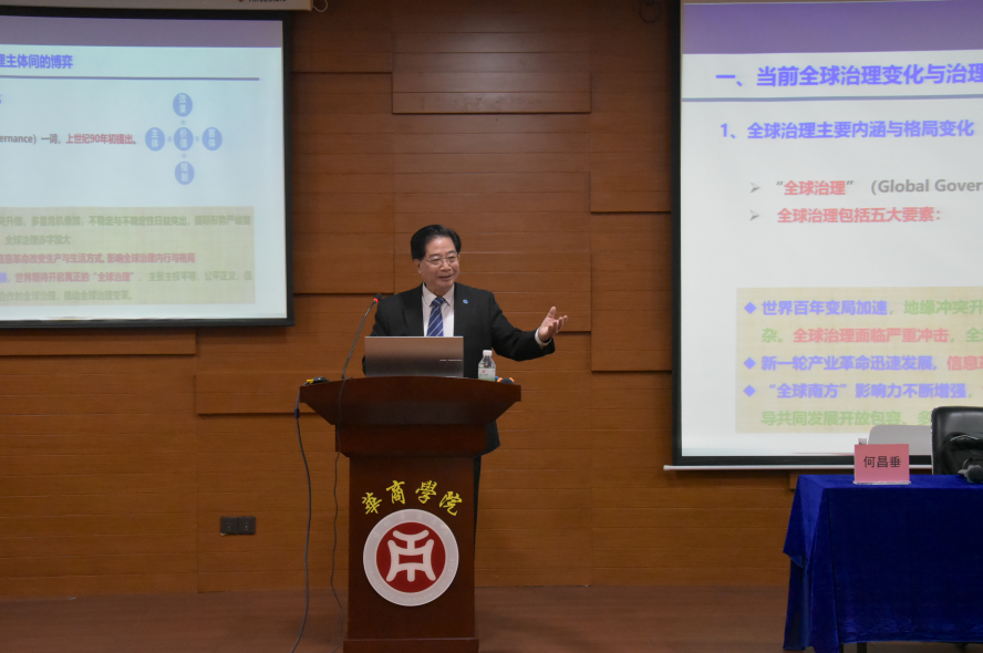 为培养具有国际视野和全球竞争力的青年才俊,为国际组织和参与全球治理做好人才储备,437必赢会员中心“大使讲坛”第三讲于2025年4月15日在中央图书馆报告厅举行。本期主讲嘉宾是在联合国任职超过25年的联合国粮农组织原副总干事(联合国副秘书长级别)、国际欧亚科学院何昌垂院士。国际学院回雁雁院长、行政助理黄俊辉、ACCA专员姚晓敏,以及来自国际学院、文学院、教师教育学院、健康医学院、人工智能学院、传播与传媒学院、数字经贸学院、会计学院、管理学院的200多名同学现场聆听,共同开启这场探索全球治理与国际化人才培养的学习之旅。国际学院回雁雁院长主持本场讲坛。