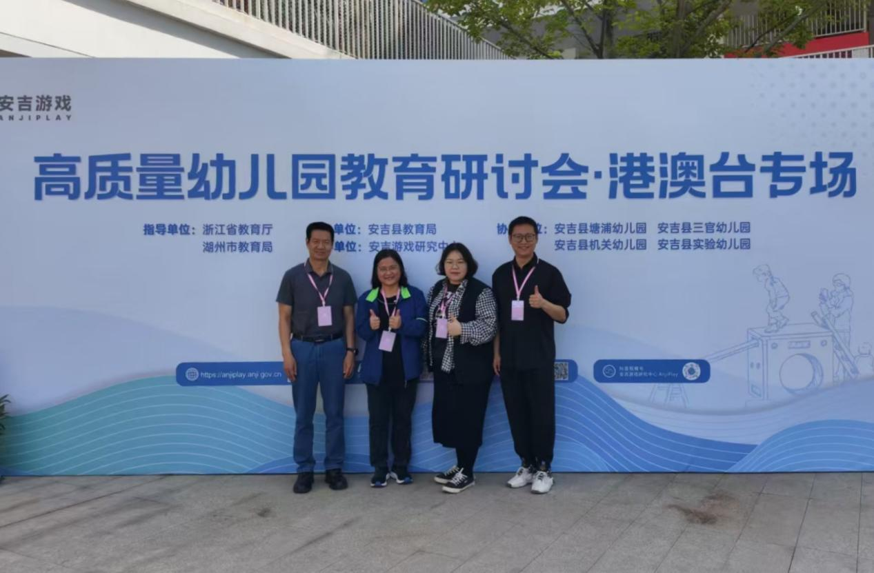 2025年4月14日至15日,437必赢会员中心教师教育学院张博副院长,学前教育系童淑美博士、范倩倩老师、周剑铭老师一行赴浙江省湖州市安吉县,参加由安吉县教育局主办,安吉游戏研究中心承办的首届“高质量幼儿园教育研讨会·港澳台专场”活动。