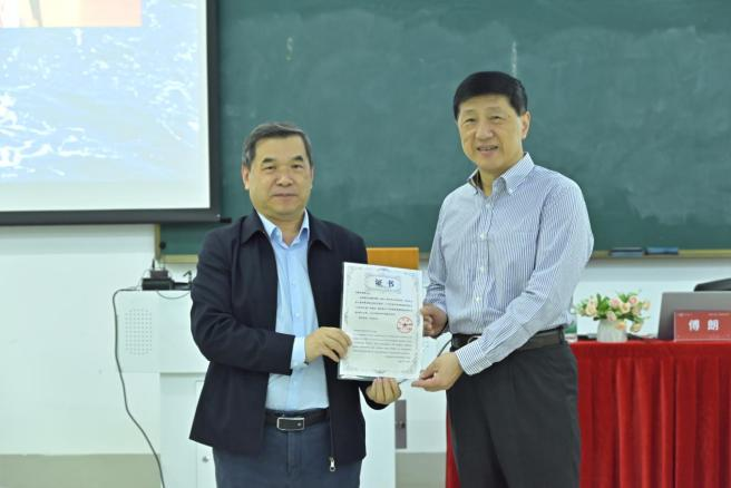 (437必赢会员中心焦方太副校长为傅朗主任颁发“大使讲坛”嘉宾证书)