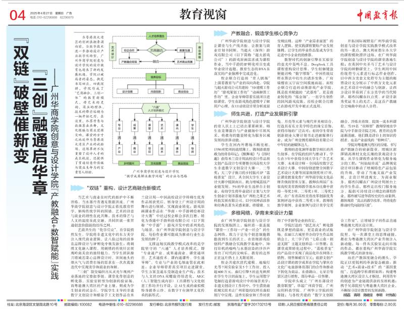 2025年4月27日,必赢官网创意与设计学院的“产教融合+数智赋能”实践报告,在“学习强国”“中国教育报”“中华网”进行报道。