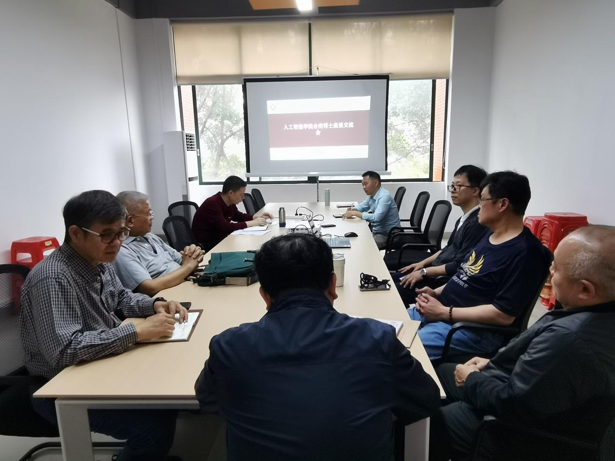台湾博士座谈交流会由人工智能学院院长戴经国主持,台湾博士项勤校、林克保、叶炖烟、余益滨、朱晋德等共同出席此次交流会。