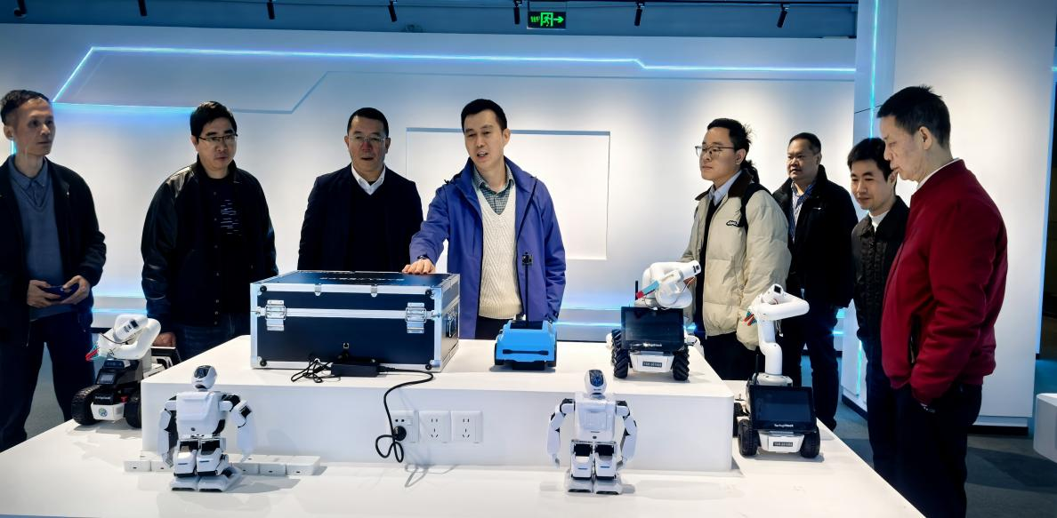 随后,王武东总经理、首席技术官刘鹤辉引领代表团参观了图灵智新的企业文化展示区、产品展示厅,详细阐述了公司的成长轨迹、现状以及主营业务。期间,吕峻闽副校长与公司工程师进行了深入交流,探讨了研发流程中的技术难题,使代表团对人工智能与机器人技术的实际应用有了更为深刻的理解。