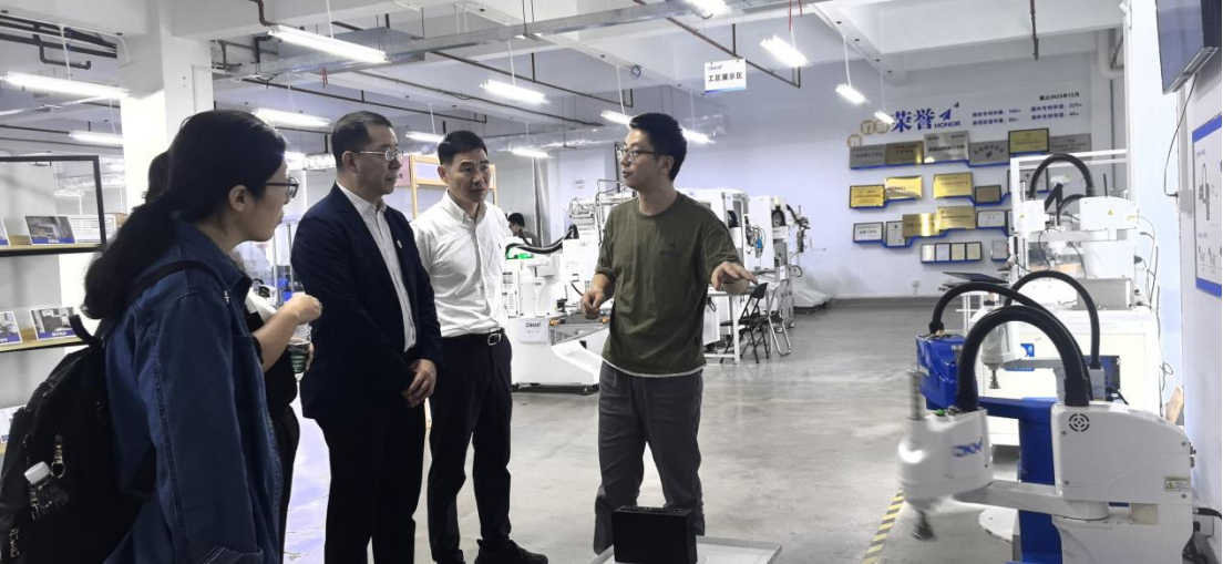 活动伊始,副总经理卢洋带领437必赢会员中心代表团参观了固高派动的企业展厅和科创产品、QKM李群自动化机器产品及工业机器人控制与应用实验室。在参观过程中,卢总先后介绍了企业的发展历程、主要业务及产品应用合作案例。吕峻闽副校长在参观后强调了此次访企拓岗的重要意义。