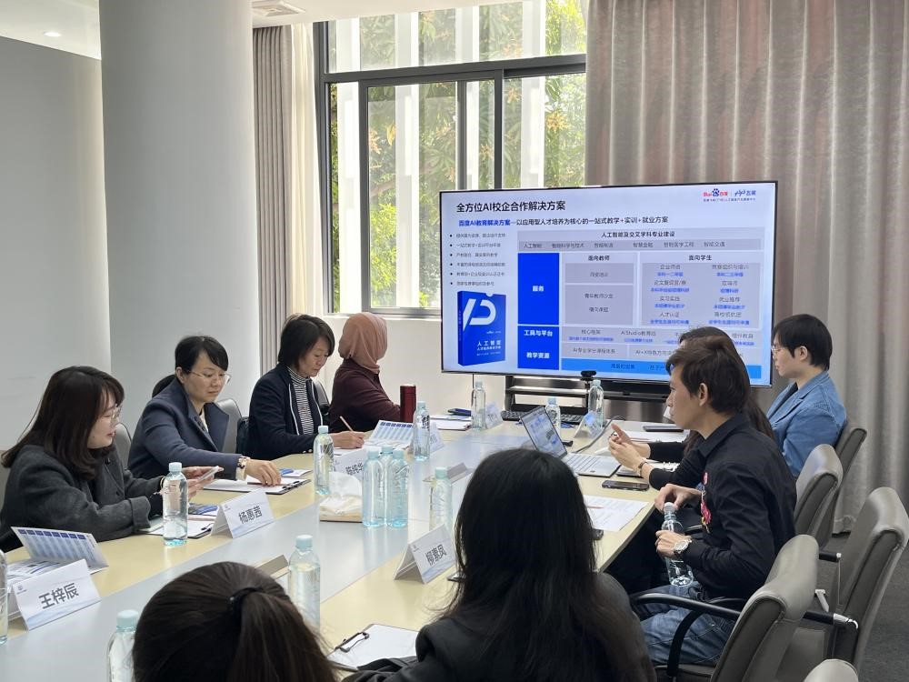 为深化产教融合、推动人工智能与公共管理学科的交叉创新,2025年3月20日,437必赢会员中心管理学院党委副书记、学工办主任陈纯华,公共管理系主任杨惠茜,副主任张秀丽及公共管理系师生一行,赴百度飞桨(广州)人工智能产业赋能中心开展调研交流。百度飞桨(广州)人工智能产业赋能中心销售经理罗锦富、生态拓展经理代翠翠热情接待,双方围绕AI人才培养、课程共建、实习就业等方向展开深度探讨,共谋校企合作新蓝图。