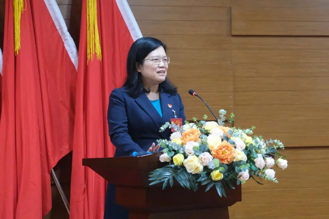 党委书记陈玉欢代表学校党委对会议的成功召开表示热烈祝贺,并向参与大会的全体同志致以诚挚问候。陈玉欢书记提到,学院党委是二级学院党的建设的领导核心,希望教师教育学院以本次大会为契机,推动学院各项工作迈上新台阶。她提出两点要求:一是始终坚持党的全面领导,坚持立德树人根本任务,围绕这一根本任务,将党的路线方针政策融入教学管理的各个环节;二是持续强化党的思想建设,发挥学院党委领导班子的政治核心作用,带领全体党员以身垂范,确保学院合格评估顺利通过,共同绘就学院发展新画卷。