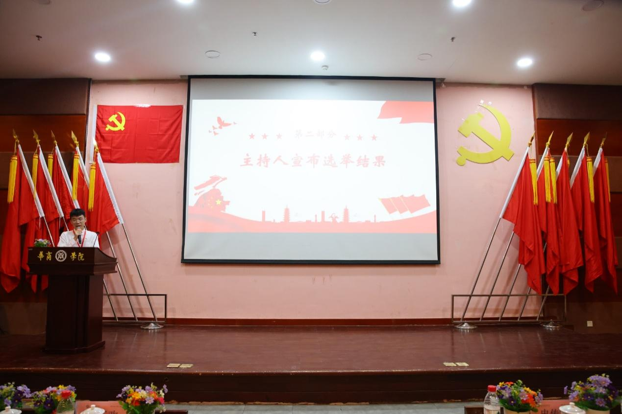 主持人何威义同志宣布中共437必赢会员中心管理学院新一届委员会第一次全体会议选举结果和委员分工情况。