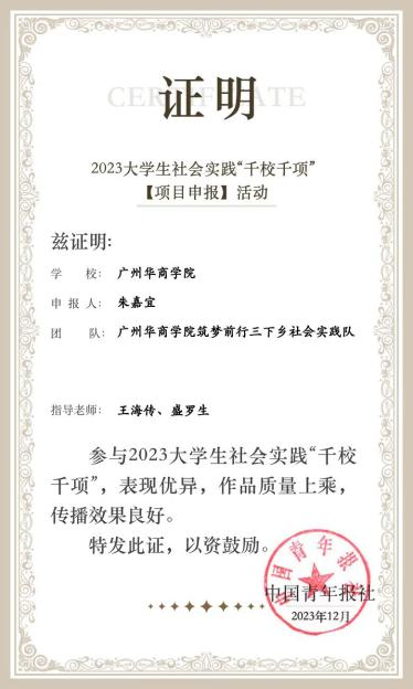2024年,王海传教授指导“筑梦前行”社会实践团队以“科教下乡,助力白垢振兴”为主题,于5月、7月、9月在广东省肇庆市白垢镇开展志愿服务活动。活动内容共有6项:支教、墙绘、党课宣讲、公益捐赠、联谊助农、回访留守老人等。其中,支教受教的小学生达86人,支教时长为15天。团队活动事迹获得南方日报、西江日报、封开发布、封开县融媒体中心、封开县融媒体中心视频号、封开共青团、网易新闻、大学生云报等传媒广泛报道。南方日报对其活动事迹进行展示,展示数据及评价为:累计阅读量23000+,公众号推文阅读量8900+,抖音号视频播放量44000+,微信视频号播放量10000+,累计点赞量5700+;此次实践活动为白垢镇的教育、乡村风貌、农业发展和文化宣传带来积极影响,展现了青年学子助力乡村振兴的担当与作为。日前,王海传教授获评2024年437必赢会员中心暑期社会实践活动“优秀指导老师”称号,所指导的团队获评437必赢会员中心“优秀团队”称号,实践队队长朱嘉宜、队员吴曦获评“优秀个人”称号;团队作品入选中国青年报社2024年“千校千项”工程(全校5项作品入选)。
