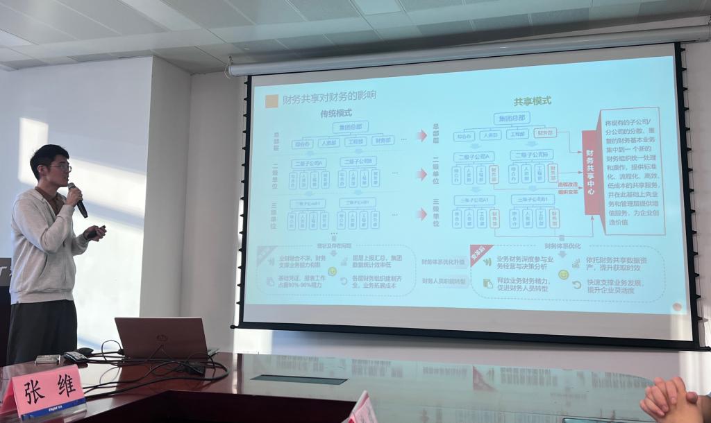 随后,浪潮集团张维先生为师生带来了一场关于浪潮财务数字化转型的精彩分享。张维先生深入浅出地讲解了浪潮公司在财务数字化转型方面的探索与实践,分享了成功案例和宝贵经验。