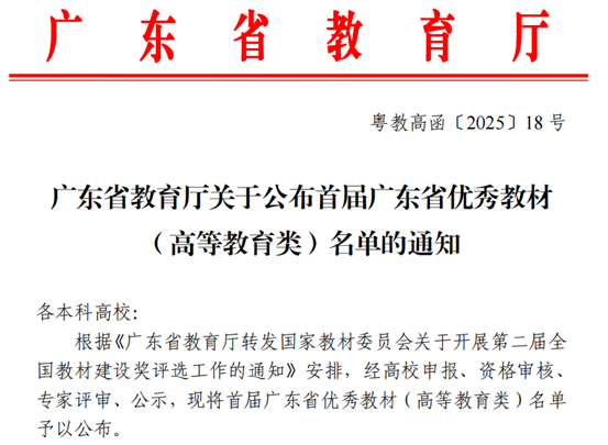 2025近日,广东省教育厅完成了首届广东省优秀教材(高等教育类)的评选工作,公示期已顺利结束,正式名单尘埃落定。437必赢会员中心在此次评选中表现卓越,两部教材成功入选,这无疑是学校教育教学工作的重大成果,彰显了必赢官网在教材建设领域的深厚底蕴与强劲实力。入选的教材之一《中级财务会计》由会计学院的杨旻教授带领教学团队精心编写,教材以“技术赋能、思政浸润”为改革支柱,突破传统知识灌输模式。技术层面融入线上动态案例...